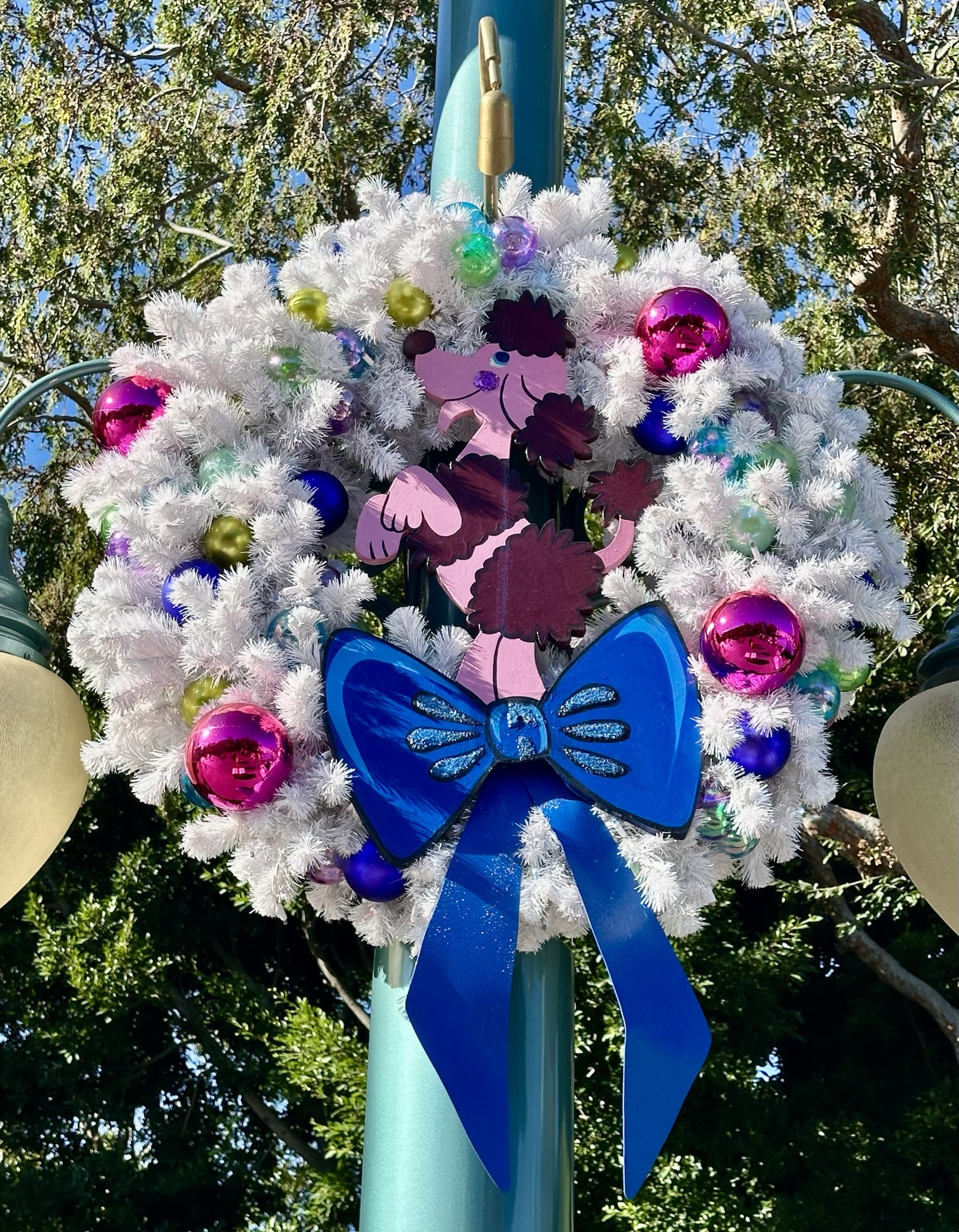 Find these wreaths on the path headed toward “it’s a small world” attraction.